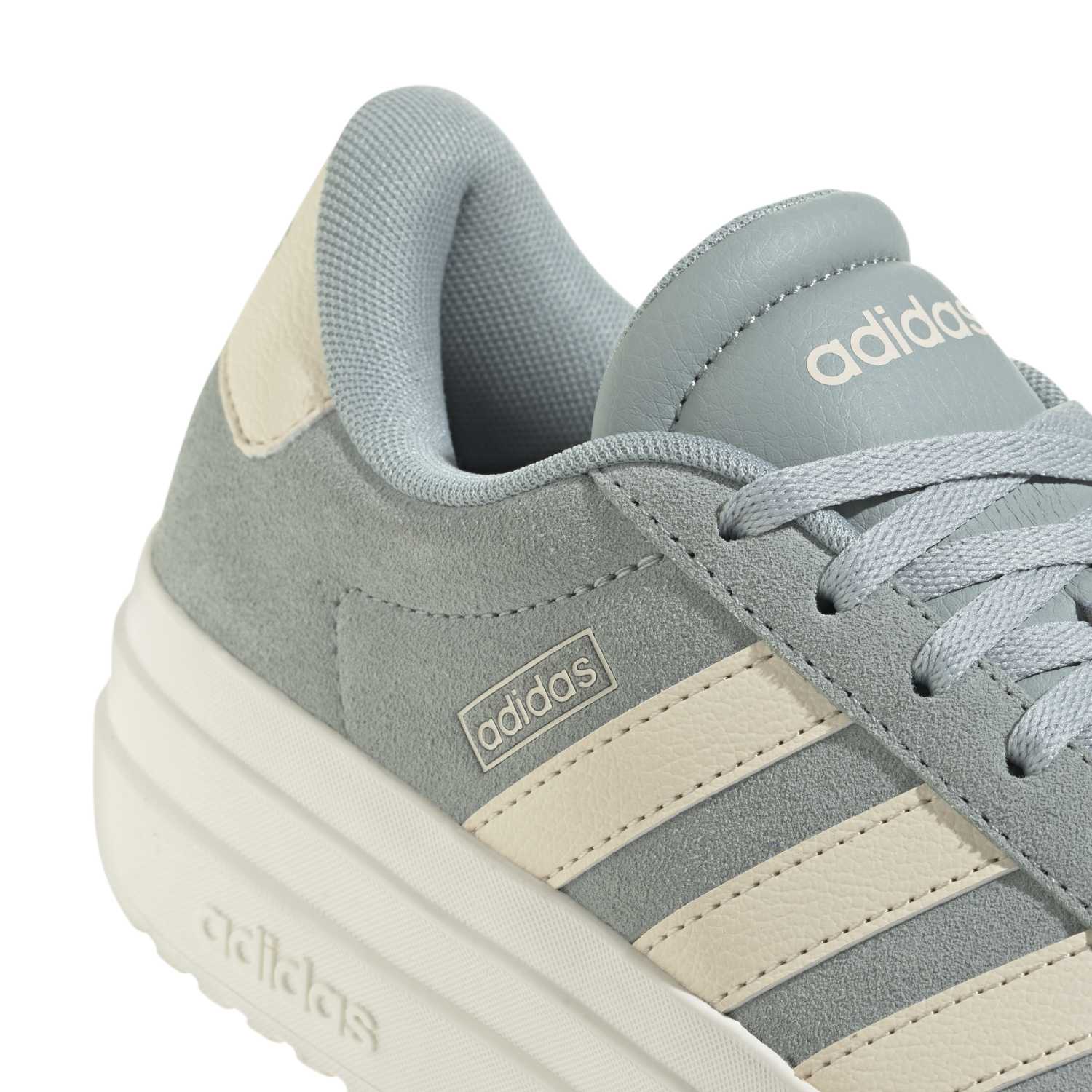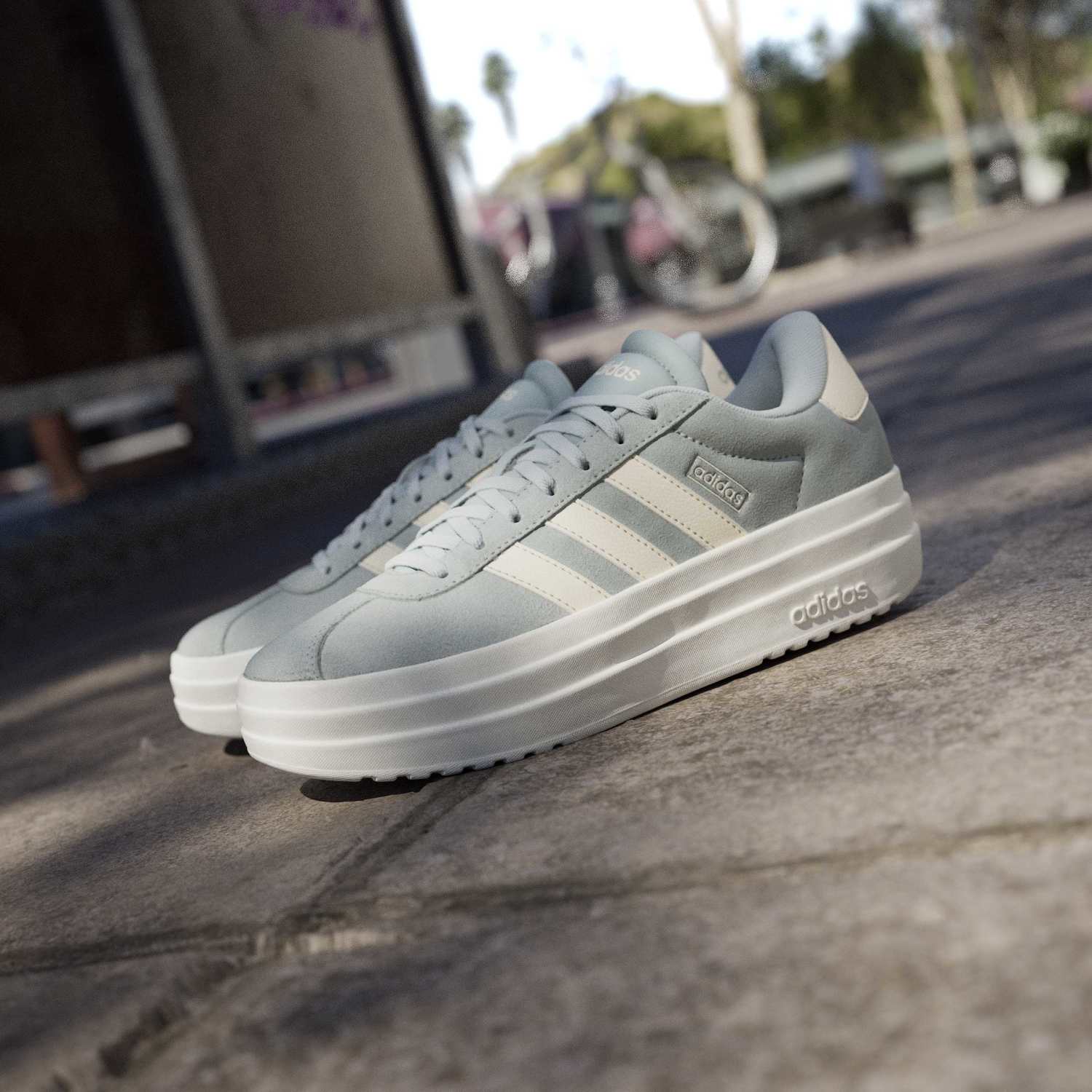 Der Adidas Damen VL Court Bold Sneaker IH9150 verbindet sportliche Zurückhaltung mit einem modernen, urbanen Look. Besonders auffällig ist seine markante Plateausohle, die dem Schuh nicht nur zusätzliche Höhe verleiht, sondern auch einen selbstbewussten Auftritt schafft. Das Design wirkt klar und vielseitig: Die typischen drei Streifen sorgen für den unverwechselbaren Adidas-Charakter, während die Linien insgesamt schlicht genug bleiben, um den Sneaker problemlos zu ganz unterschiedlichen Outfits zu kombinieren.