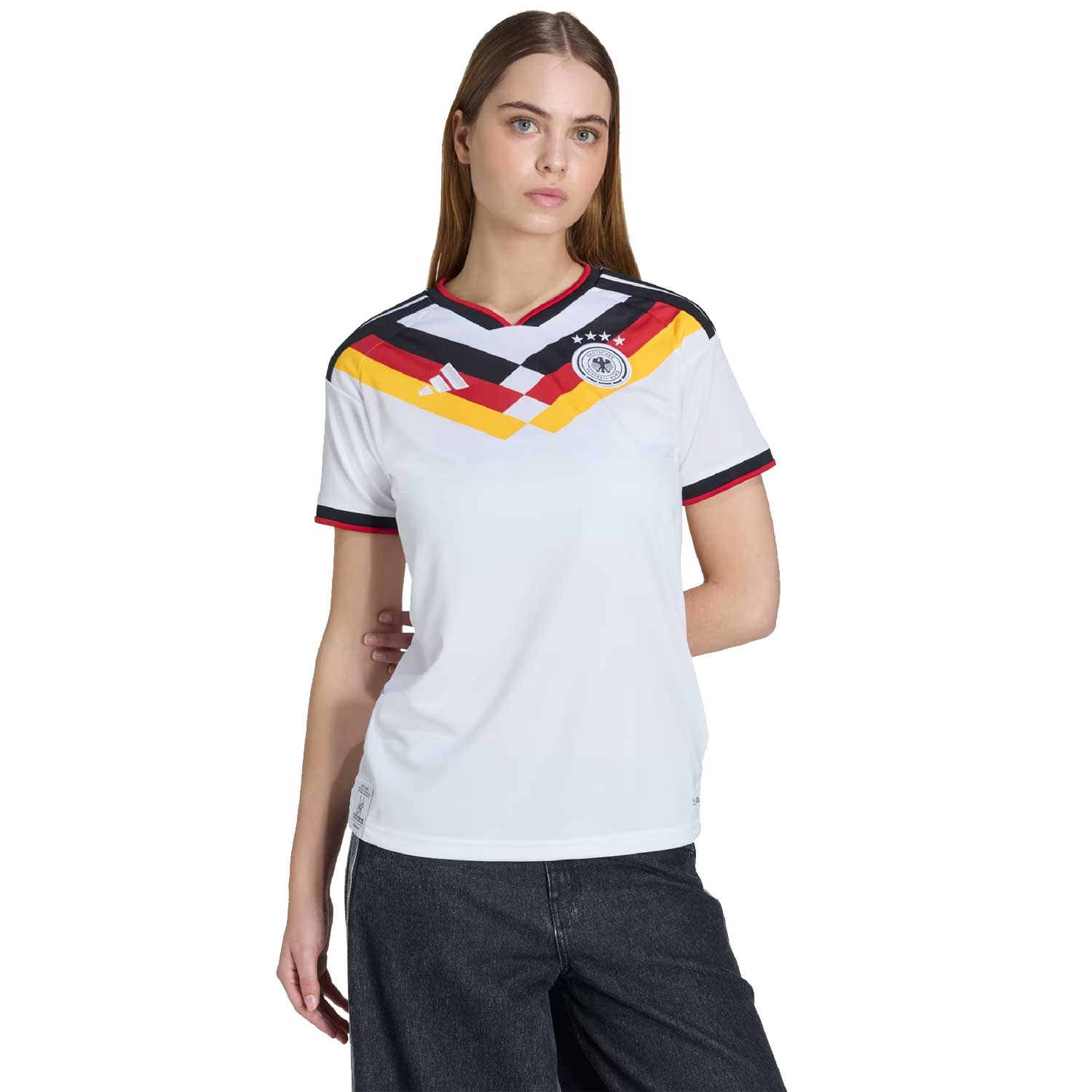 Mit dem adidas DFB Home Jersey Damen zur WM 2026 bekommst du ein hochwertiges, modisch-schlichtes und zugleich sportliches Trikot, das die Tradition und Stärke des deutschen Fußballs widerspiegelt. Dieses Heimtrikot wurde speziell für Frauen entworfen – mit einer angenehmen, taillierten Passform und leichter, funktionaler Materialqualität.