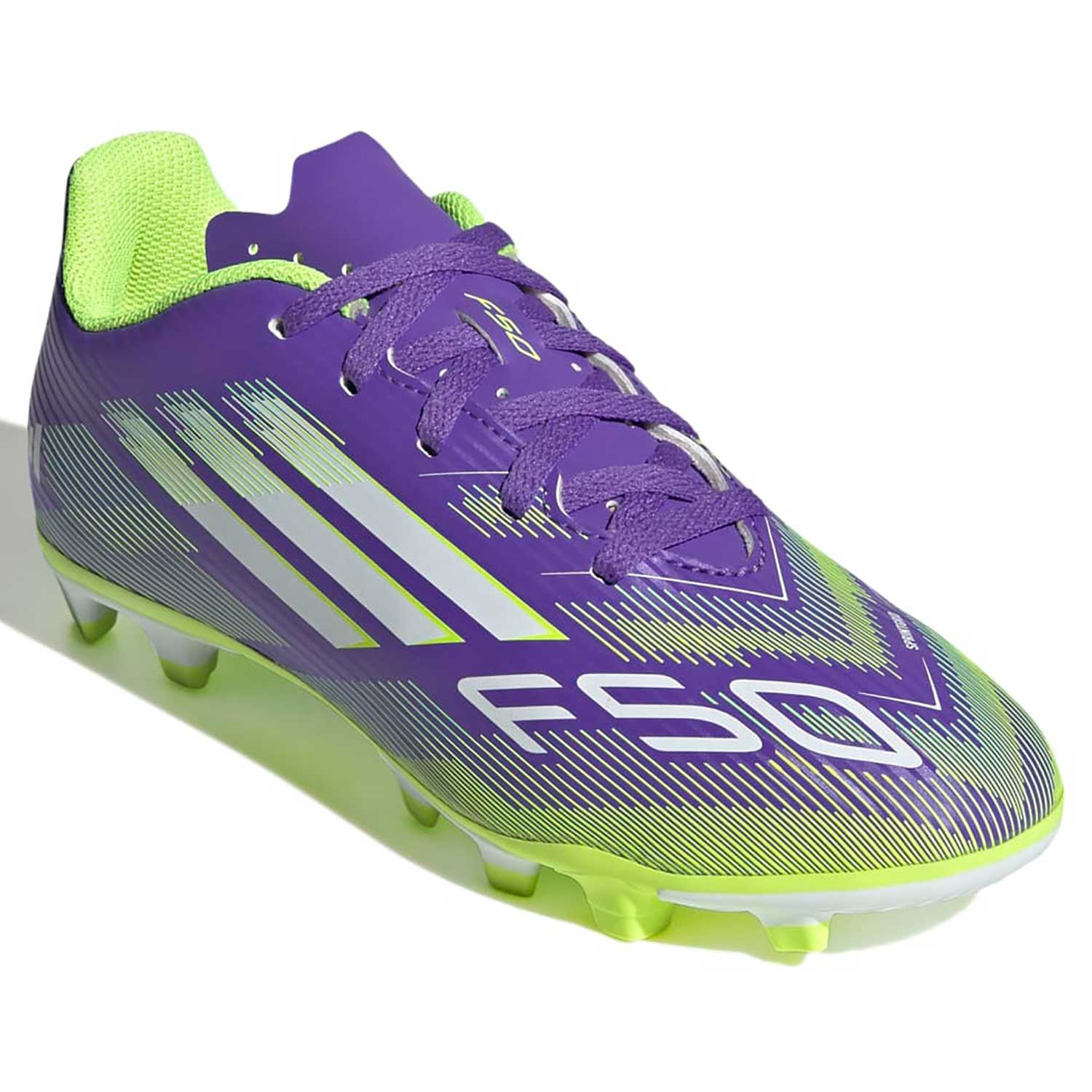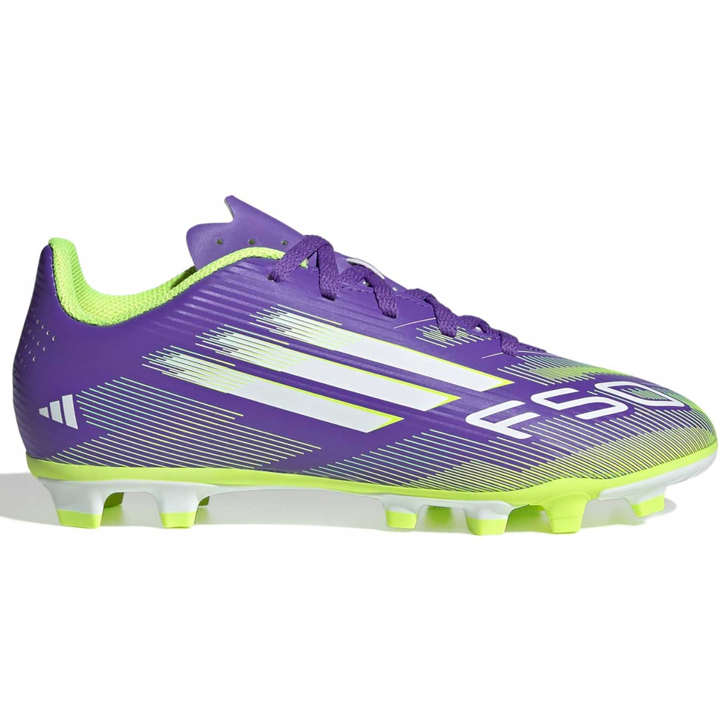 Der adidas F50 Club FG/MG J in der Farbkombination ist der perfekte Einstieg für junge Spieler, die auf dem Platz durch pure Geschwindigkeit und ein modernes Design glänzen wollen. Dieser Schuh wurde speziell für Kinder und Jugendliche entwickelt, die einen robusten und zuverlässigen Allrounder suchen, der die technologische DNA der F50-Serie in ein erschwingliches und strapazierfähiges Paket bringt. Das hochwertige Synthetik-Obermaterial überzeugt nicht nur durch seine Langlebigkeit, sondern ist zudem besonders pflegeleicht, was es zum idealen Begleiter für den intensiven Vereins- und Schulsport auf unterschiedlichen Bodenbelägen macht.