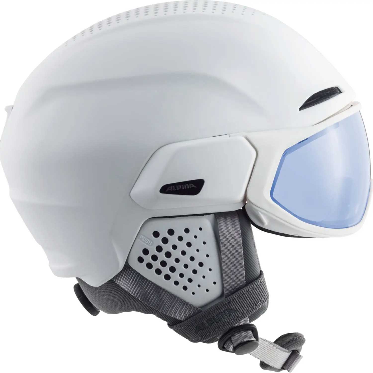 Der Alpina ALTO QV Skihelm mit Visier in der Größe 59–63 cm überzeugt durch eine gelungene Kombination aus Sicherheit, Komfort und modernem Design. In elegantem Schwarz gehalten, richtet sich dieser Helm an anspruchsvolle Skifahrer, die Wert auf zuverlässigen Schutz und klare Sicht legen. Die robuste Inmold-Konstruktion sorgt für hohe Stabilität bei gleichzeitig geringem Gewicht, was den Tragekomfort auch an langen Skitagen deutlich erhöht. Das integrierte QV-Visier bietet ein großes Sichtfeld und schützt die Augen zuverlässig vor Wind, Schnee und UV-Strahlung, wodurch eine Skibrille überflüssig wird. Dank der durchdachten Belüftung bleibt das Klima im Helm angenehm ausgeglichen, während das weiche Innenfutter und das präzise Anpassungssystem einen sicheren, bequemen Sitz gewährleisten. Der Alpina ALTO QV ist damit ein vielseitiger Skihelm, der Funktionalität und Stil vereint und sowohl auf der Piste als auch beim entspannten Carven überzeugt.
