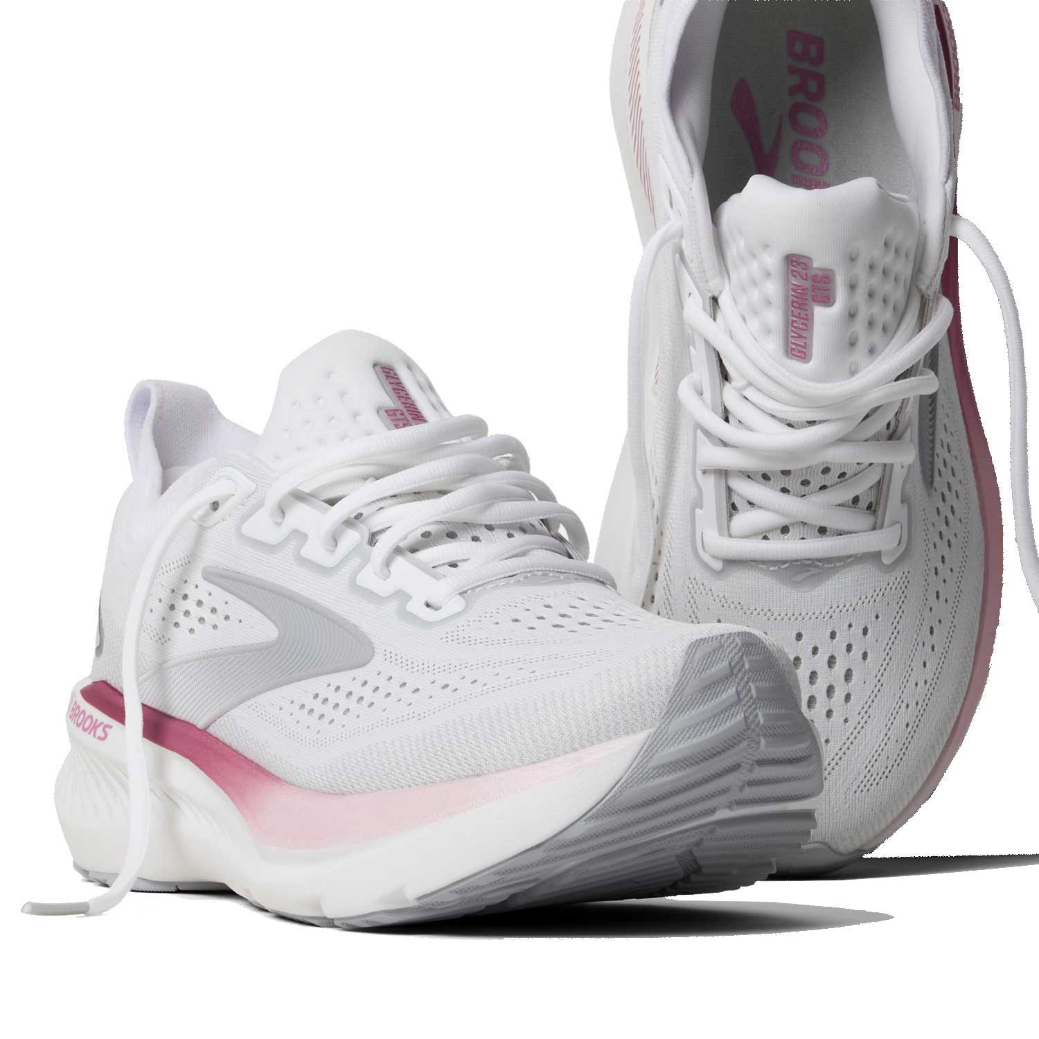 Der Brooks Glycerin GTS 23 für Damen ist die perfekte Lösung für Läuferinnen, die bei ihren täglichen Läufen das Maximum an Dämpfung suchen und gleichzeitig von einer intelligenten Stabilitätsunterstützung profitieren möchten. Als High-End-Laufschuh vereint dieses Modell ein luxuriöses Tragegefühl mit technischer Präzision, um den Körper auch auf langen Distanzen optimal zu entlasten. Das Design besticht durch eine frische, feminine Ästhetik, die durch die harmonische Abstimmung von klassischem Weiß mit kontrastierenden dunklen Elementen und leuchtenden Farbakzenten überzeugt.