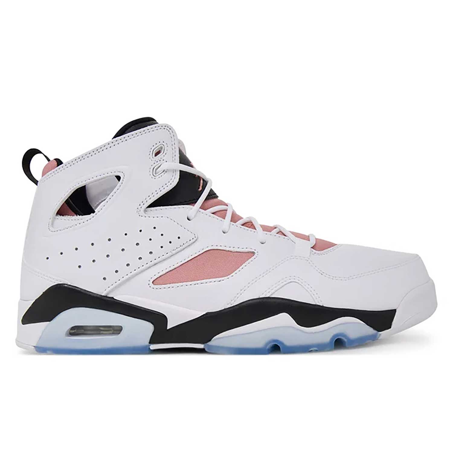 Der Jordan Flight Club 91 Herren Basketball Sneaker DC7329-103 verbindet klassische Basketball-Ästhetik mit modernem Tragekomfort und richtet sich an Sneaker-Fans, die sportliches Design mit Alltagstauglichkeit kombinieren möchten. Inspiriert vom legendären Air Jordan 6 greift dieses Modell markante Designelemente wie die seitlichen Aussparungen, die strukturierte Silhouette und die sichtbare Air-Dämpfung in der Ferse auf. Besonders auffällig ist die Farbgebung in Weiß, Rust Pink und Schwarz, die dem Schuh einen modernen, zugleich aber retro-inspirierten Look verleiht.