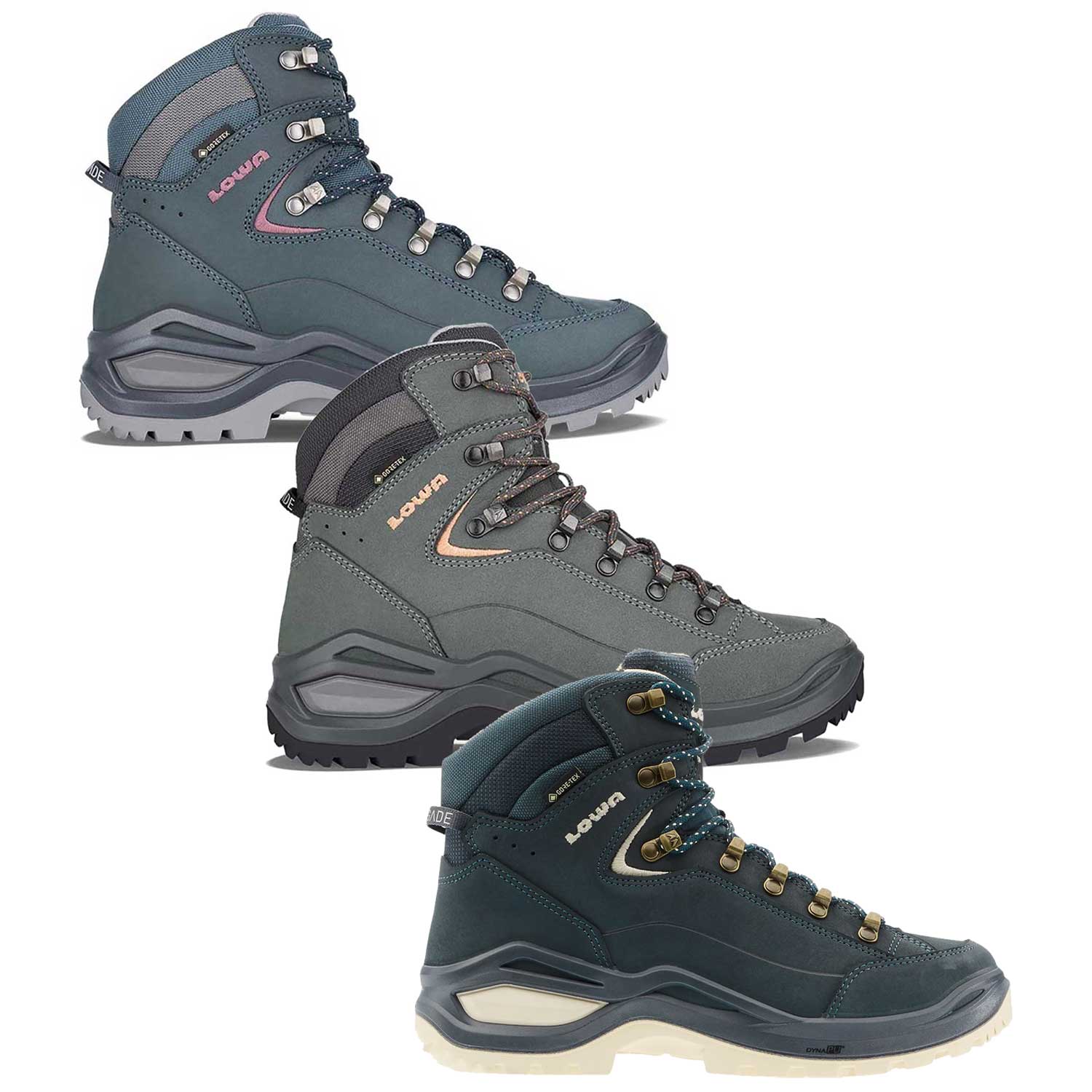 Der Lowa Renegade EVO GTX Mid Ws ist ein herausragender Wanderschuh für Damen, der in puncto Komfort, Stabilität und Langlebigkeit Maßstäbe setzt. Entwickelt für anspruchsvolle Wanderungen und lange Trekkingtouren, kombiniert dieser Schuh modernste Technologie mit einem ansprechenden Design, das sich harmonisch in die Natur einfügt. Das Herzstück des Renegade EVO GTX Mid Ws ist die hochwertige GORE-TEX-Membran, die für eine optimale Wasserdichtigkeit und Atmungsaktivität sorgt. Diese Technologie hält die Füße auch bei widrigen Wetterbedingungen trocken und bietet gleichzeitig eine exzellente Feuchtigkeitsregulierung, wodurch der Komfort bei langen Touren maximiert wird. Die Zwischensohle aus dämpfendem Polyurethan (PU) bietet eine ausgezeichnete Stoßabsorption und unterstützt das natürliche Abrollverhalten des Fußes. Dies sorgt für eine angenehme und gleichmäßige Belastung, was gerade bei langen Wanderungen essenziell ist. Zusätzlich trägt die Monowrap-Konstruktion des Schuhs zur Stabilität bei, indem sie den Fuß optimal umschließt und so für sicheren Halt sorgt, selbst auf unebenem Gelände. Der Lowa Renegade EVO GTX Mid Ws verfügt über ein Obermaterial aus hochwertigem Nubukleder, das nicht nur robust und langlebig ist, sondern auch eine elegante Optik bietet. Die Farbgebung verleiht dem Schuh eine moderne Note, die sich von den klassischen Wanderfarben abhebt und gleichzeitig zeitlos bleibt. Die Vibram-Evo-Außensohle sorgt für exzellenten Grip auf unterschiedlichsten Untergründen. Ihre spezielle Profilgestaltung gewährleistet Trittsicherheit und Stabilität, ob auf steinigen Pfaden, matschigen Wegen oder im alpinen Gelände. Diese Sohle ist zudem besonders abriebfest, was die Langlebigkeit des Schuhs weiter erhöht. Ein weiteres Plus des Renegade EVO GTX Mid Ws ist die speziell auf die weibliche Fußanatomie abgestimmte Passform. Der Schuh bietet einen hohen Tragekomfort durch seine ergonomische Gestaltung, die für eine optimale Unterstützung des Fußgewölbes sorgt und Druckstellen verhindert. Zusammengefasst ist der Lowa Renegade EVO GTX Mid Ws Damen Wanderschuh in Stahlblau ein idealer Begleiter für alle, die Wert auf Komfort, Stabilität und Stil legen. Ob bei anspruchsvollen Bergtouren oder gemütlichen Wanderungen im Flachland, dieser Schuh bietet die perfekte Kombination aus Schutz, Unterstützung und Ästhetik und wird damit höchsten Ansprüchen gerecht.